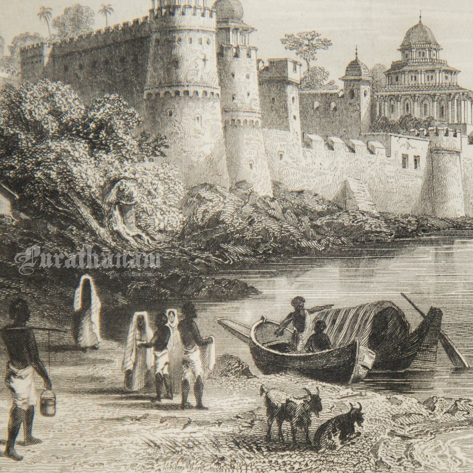 Here is an Antique black & white engraving of “ View of Allahabad, Shewing the Fort” by Robert Montgomery Martin (1801-1868). It is an original antiques from 1857. To know more history about engraving please checkout the description of the previous collage post of engravings.