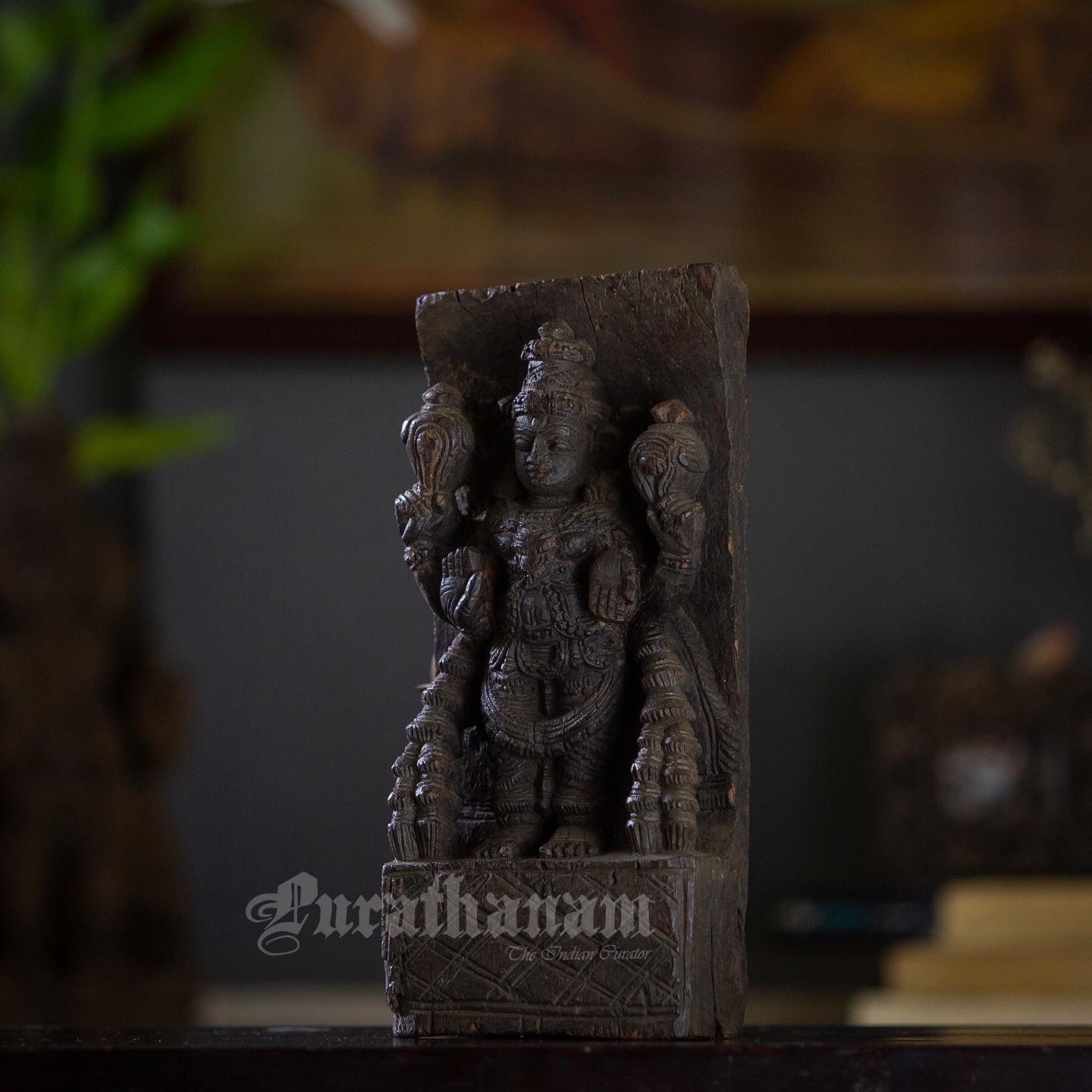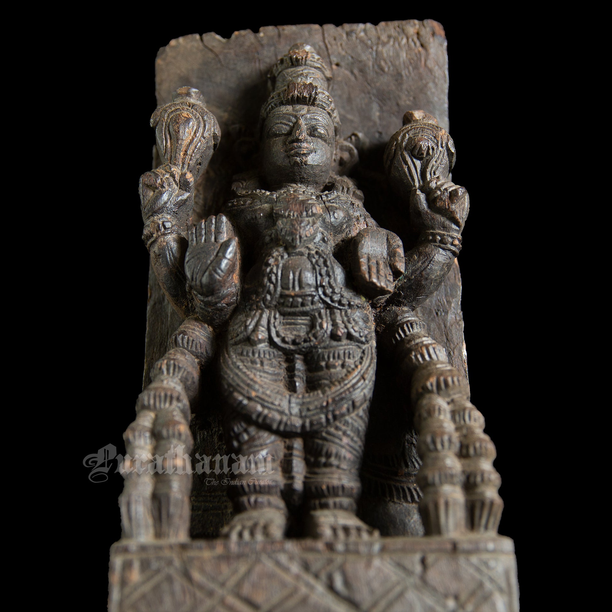 Here is a beautiful hand carved Vishnu wall panel which was part of a chariot once. It is more than 100 years old and has come all the way from Tamizh Nadu, South of India.