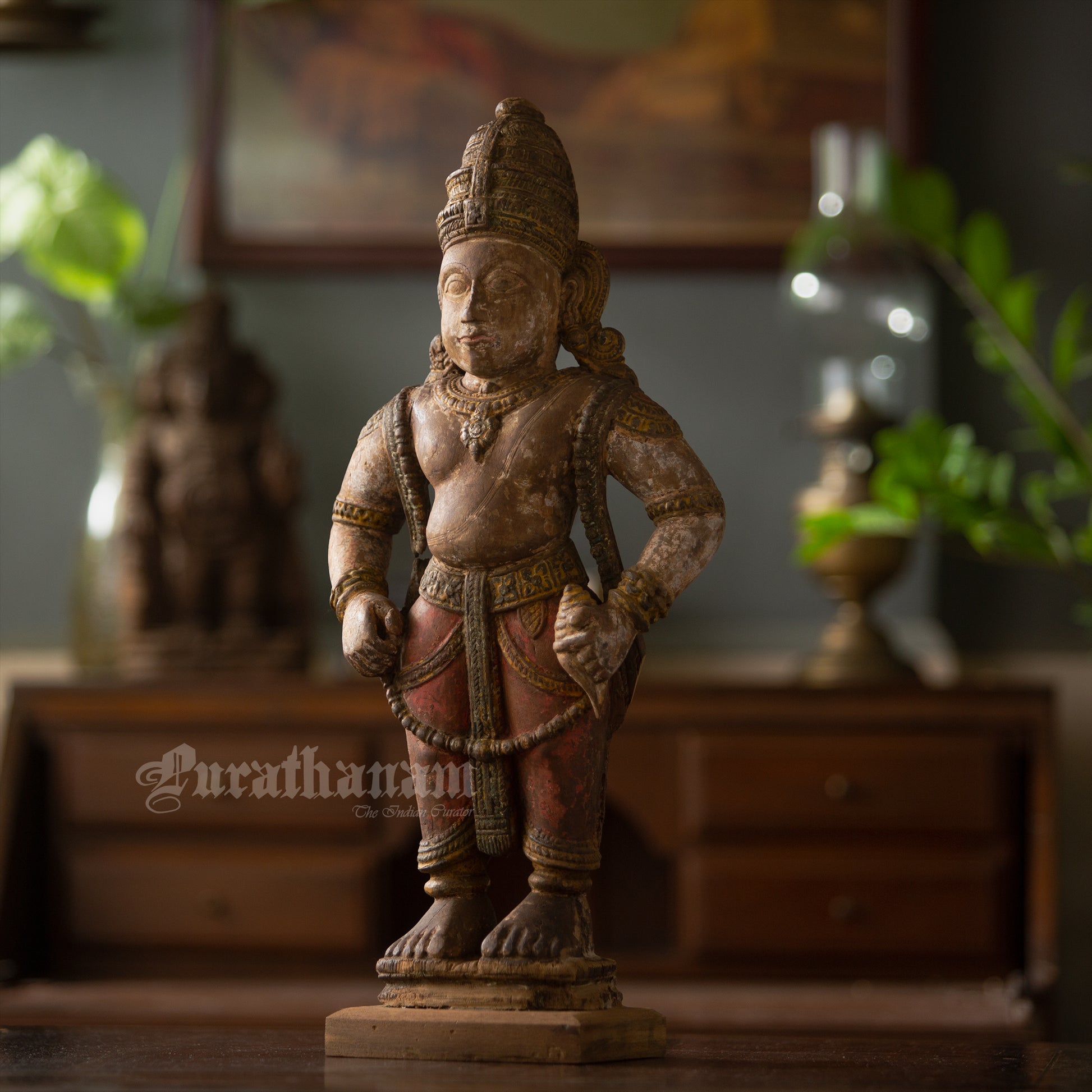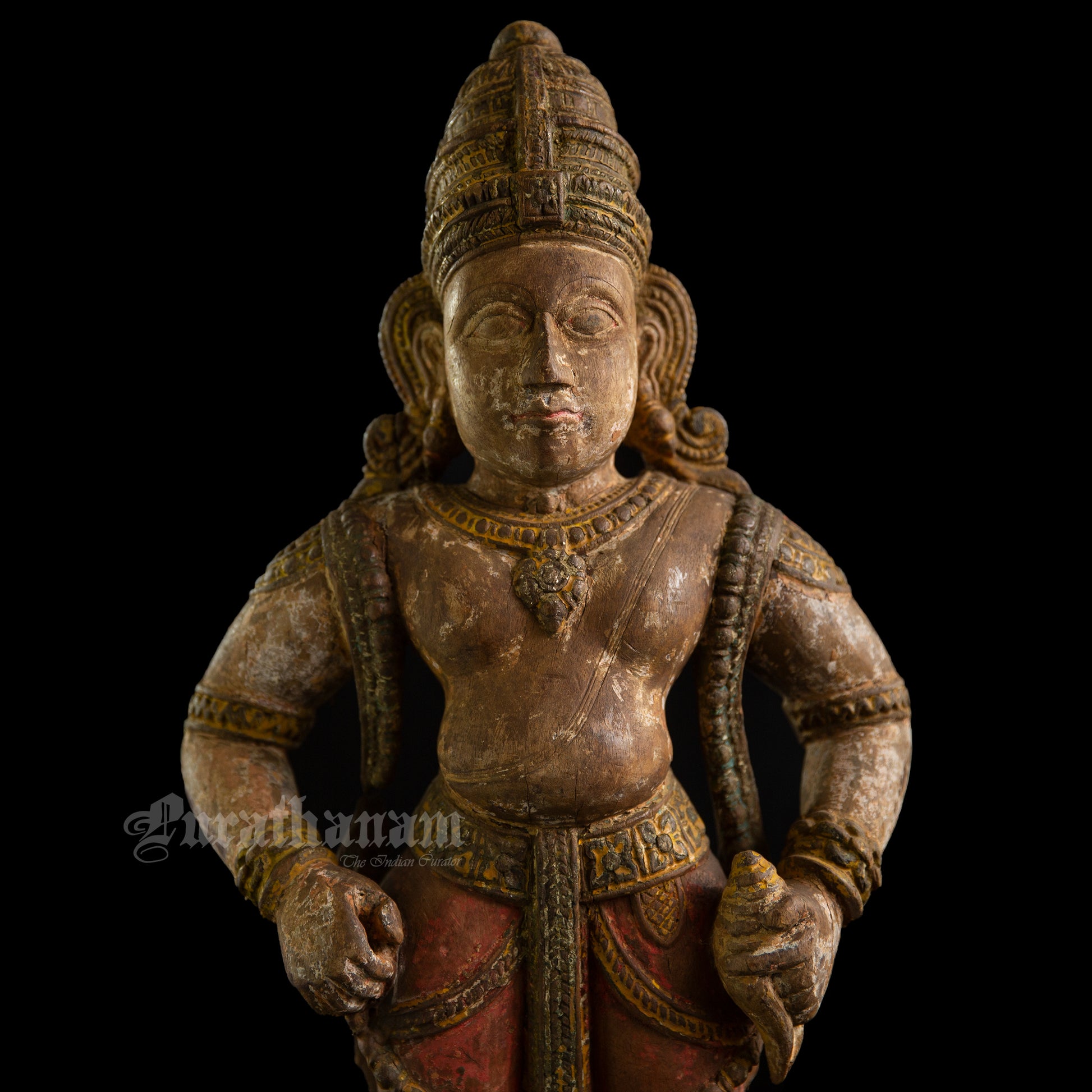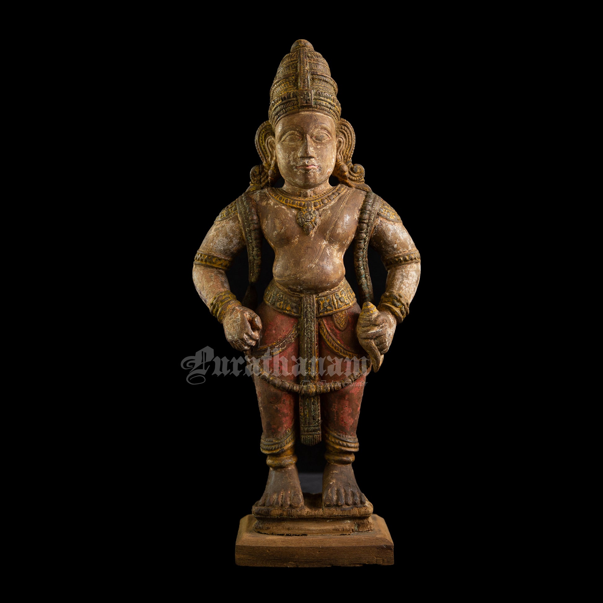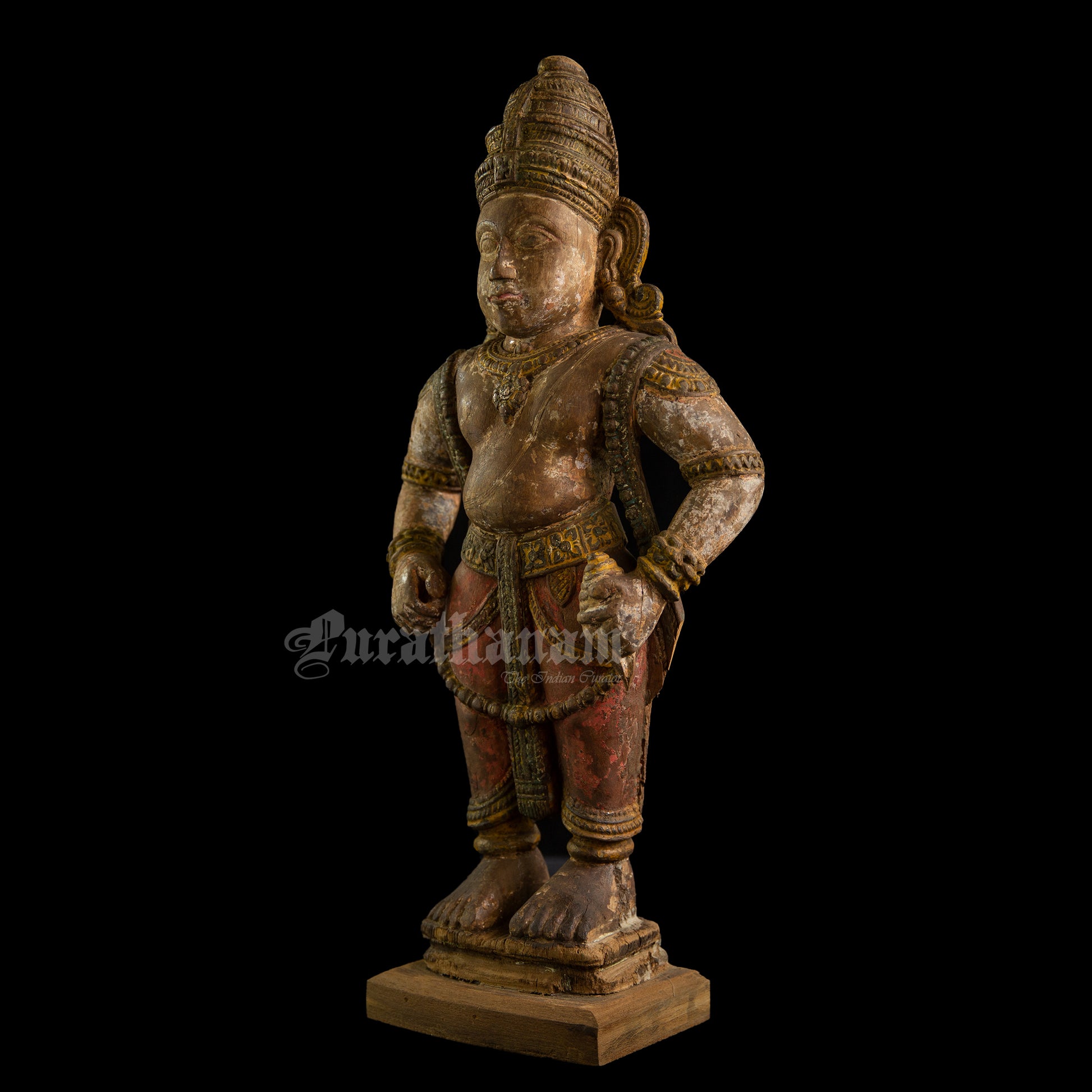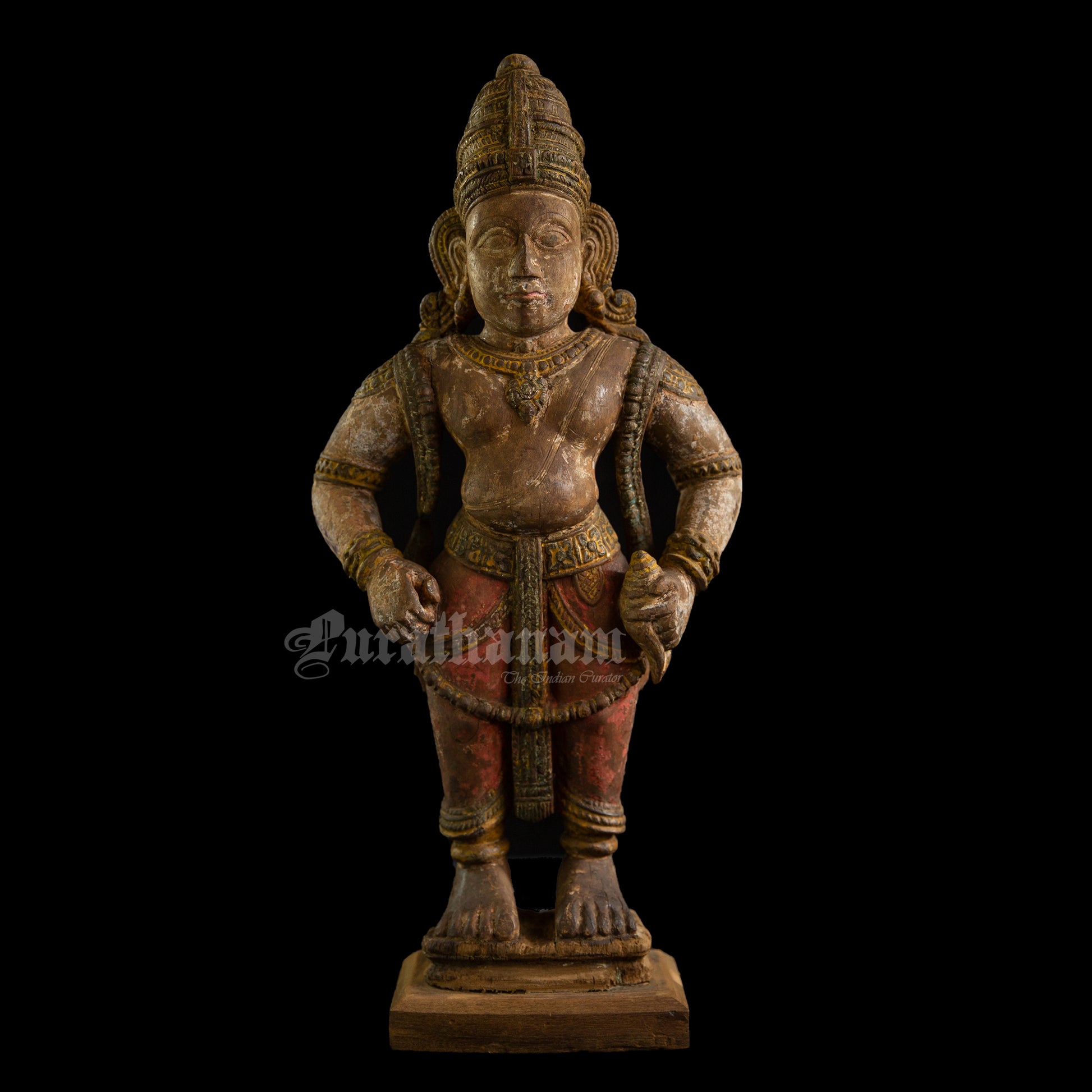Here is a beautiful hand carved wooden sculpture of Vittal which is more than a century old. The colors the artist has used on the sculpture is so subtle and the aging just adds to the character of Vittal wooden sculpture.