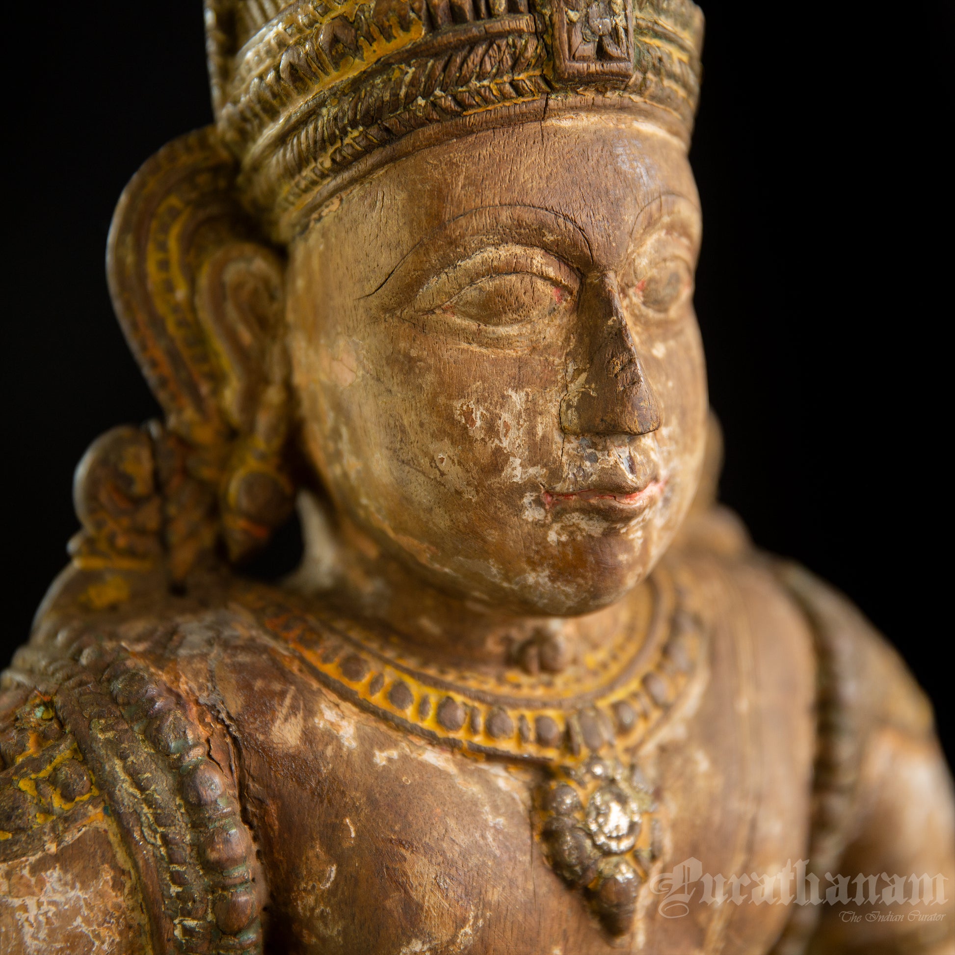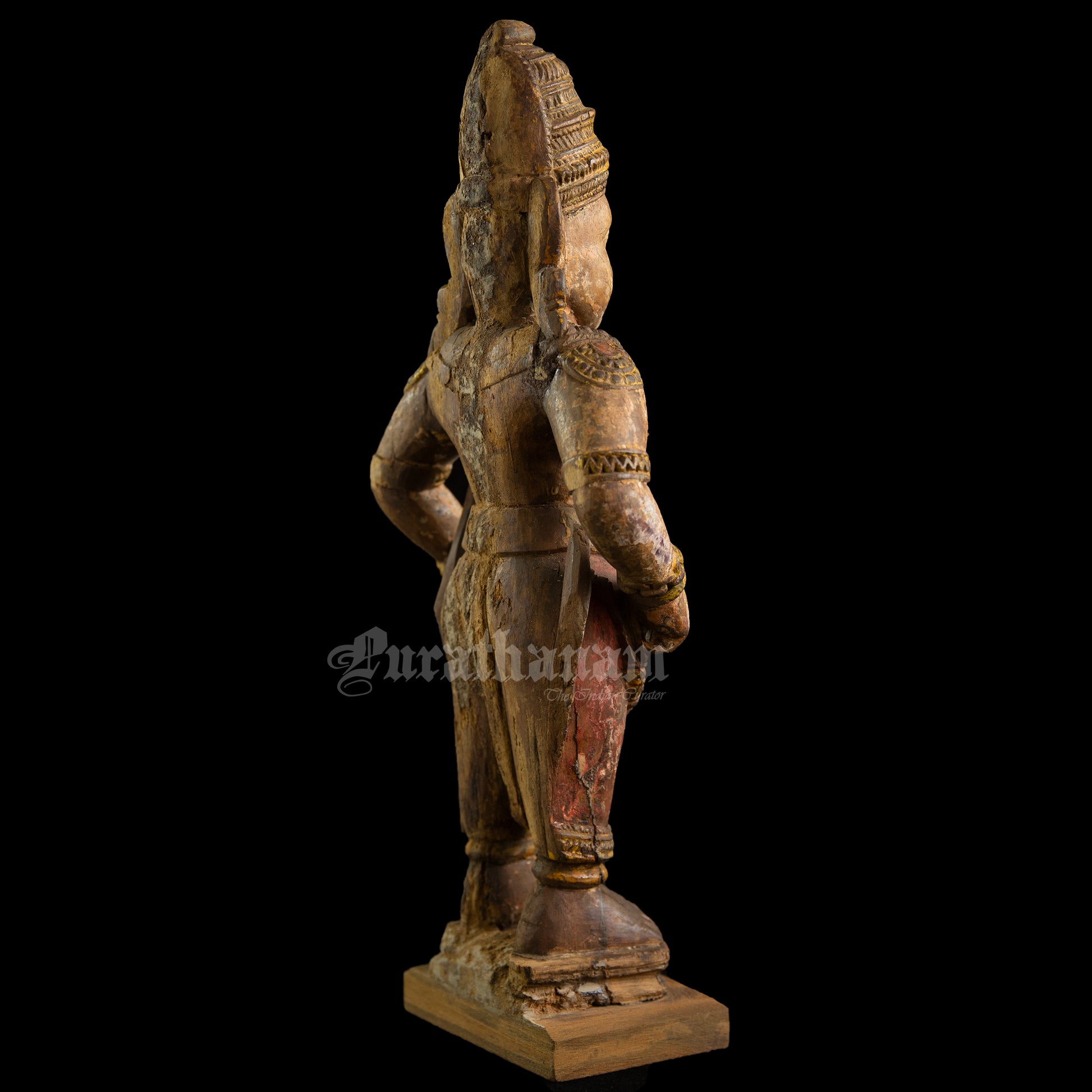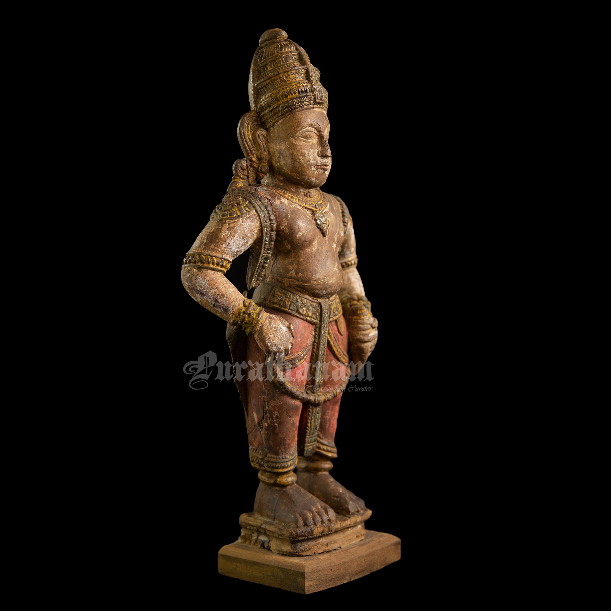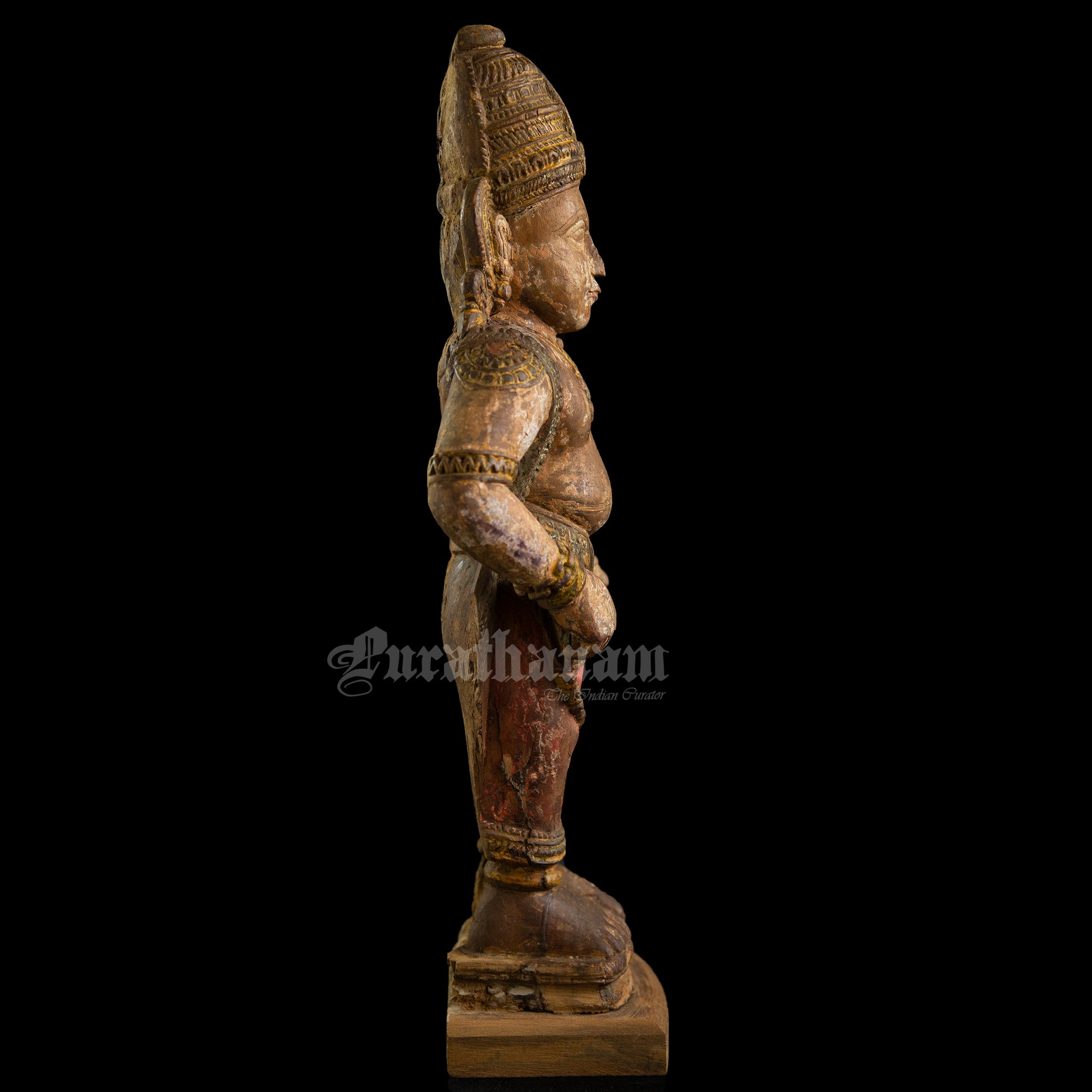 Here is a beautiful hand carved wooden sculpture of Vittal which is more than a century old. The colors the artist has used on the sculpture is so subtle and the aging just adds to the character of Vittal wooden sculpture.