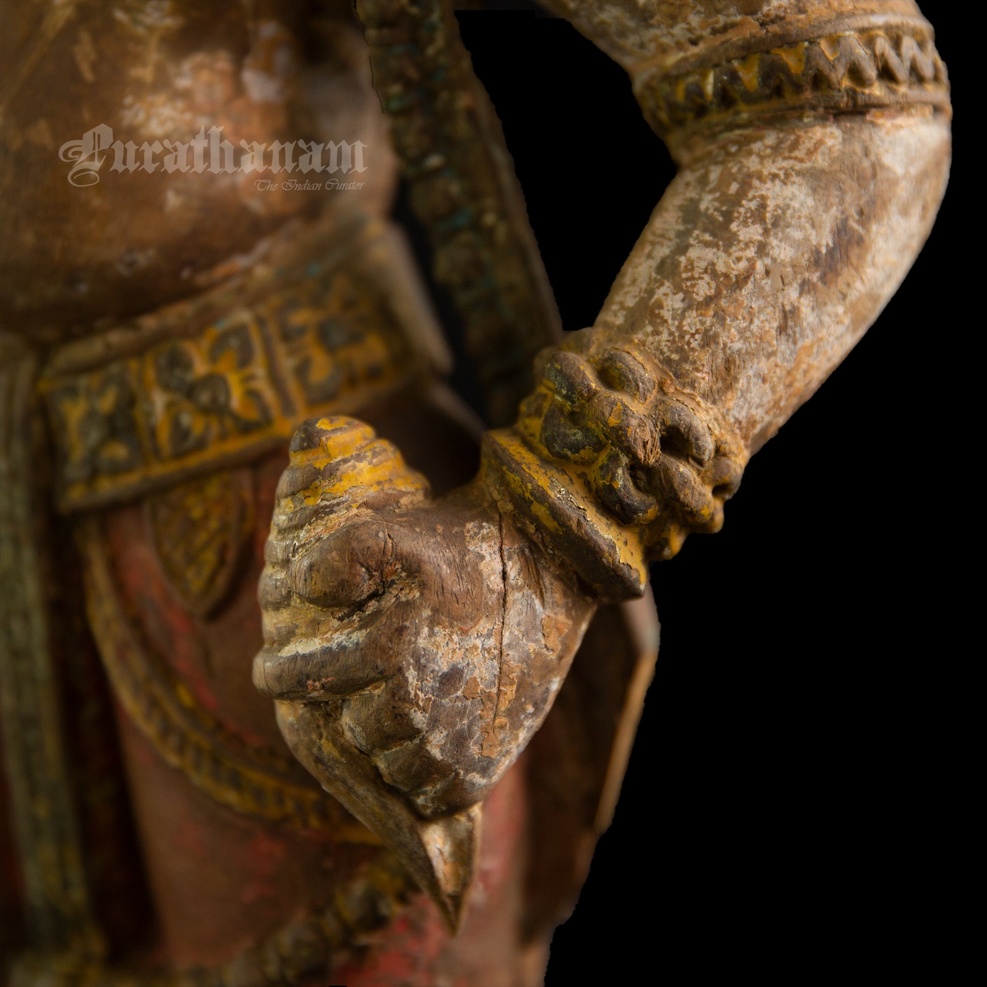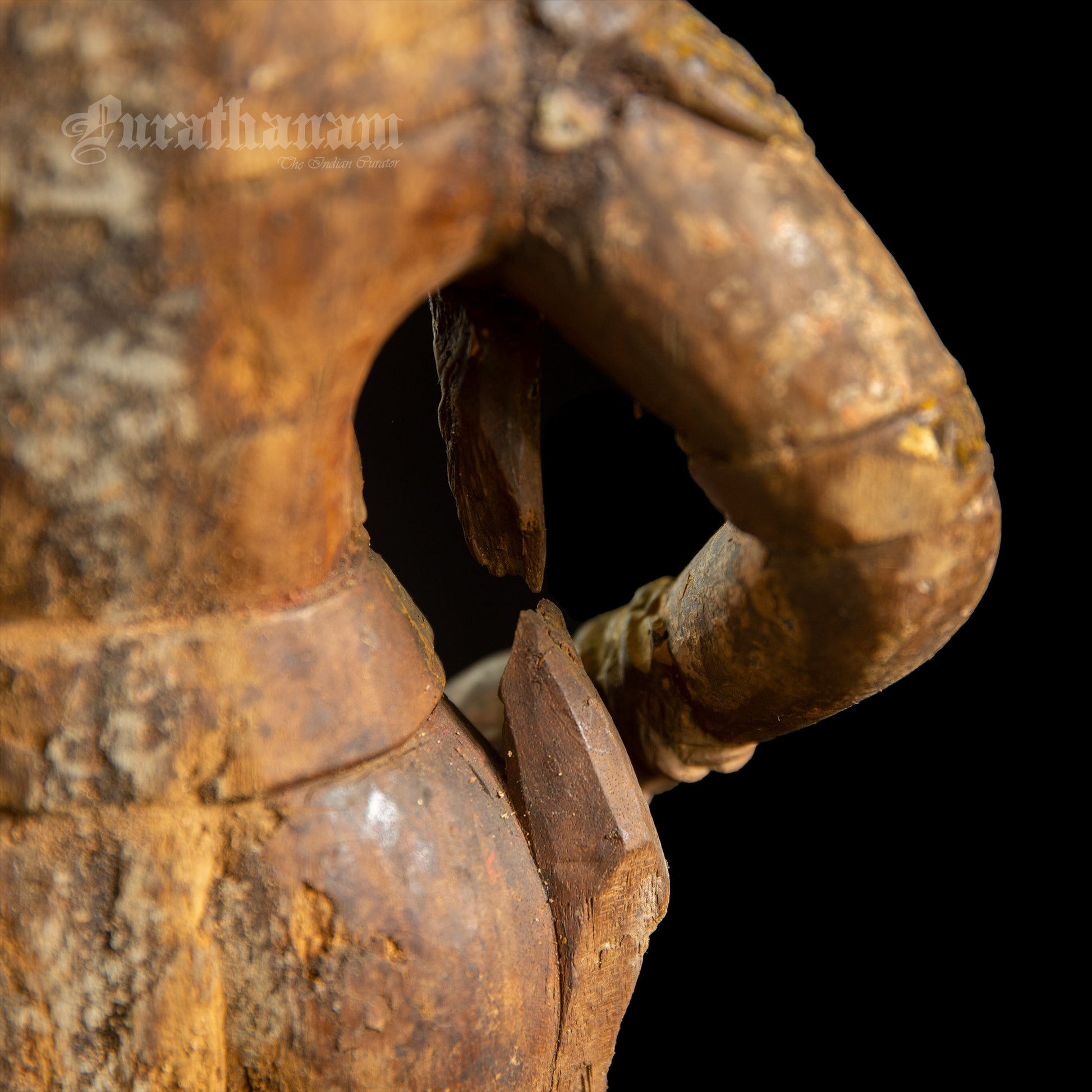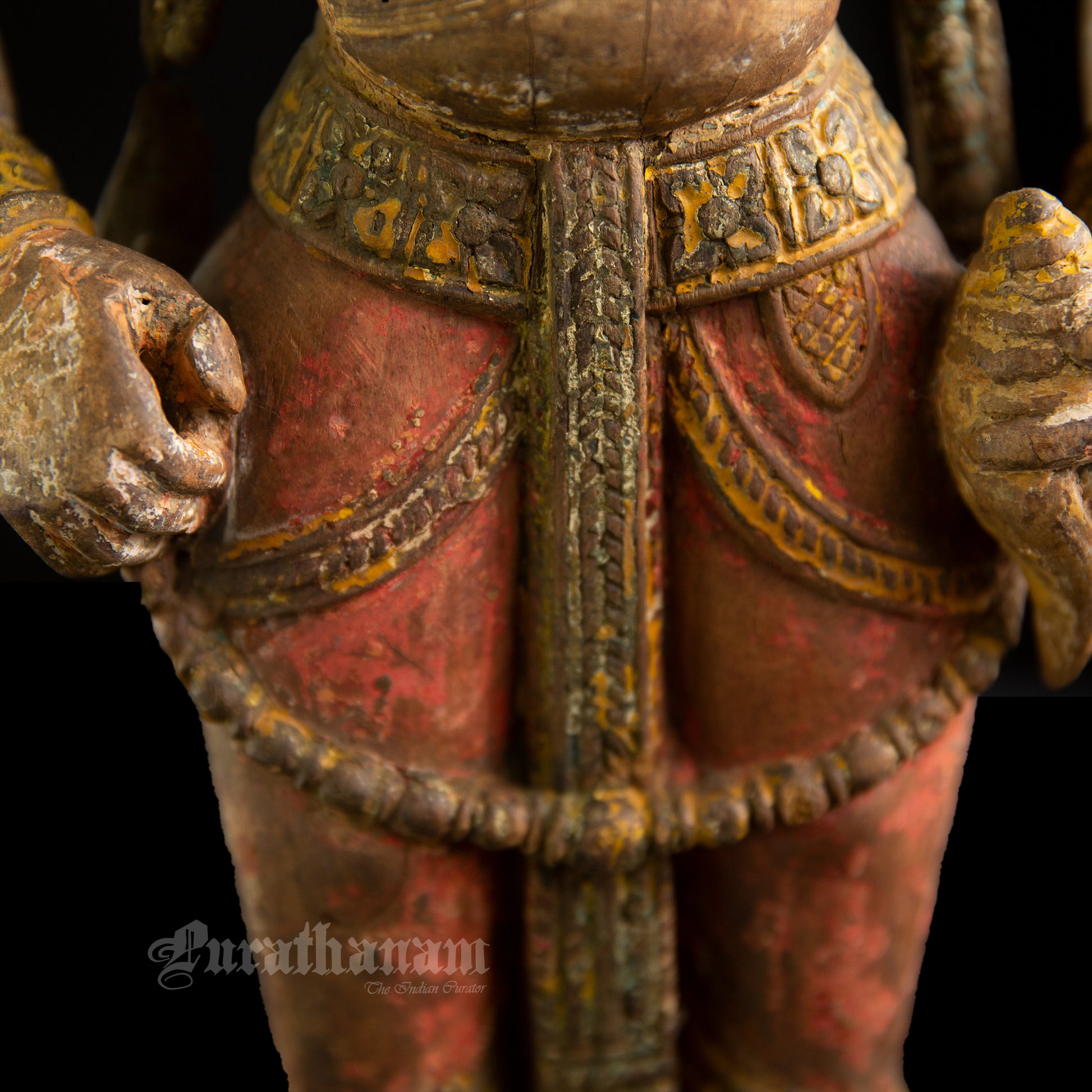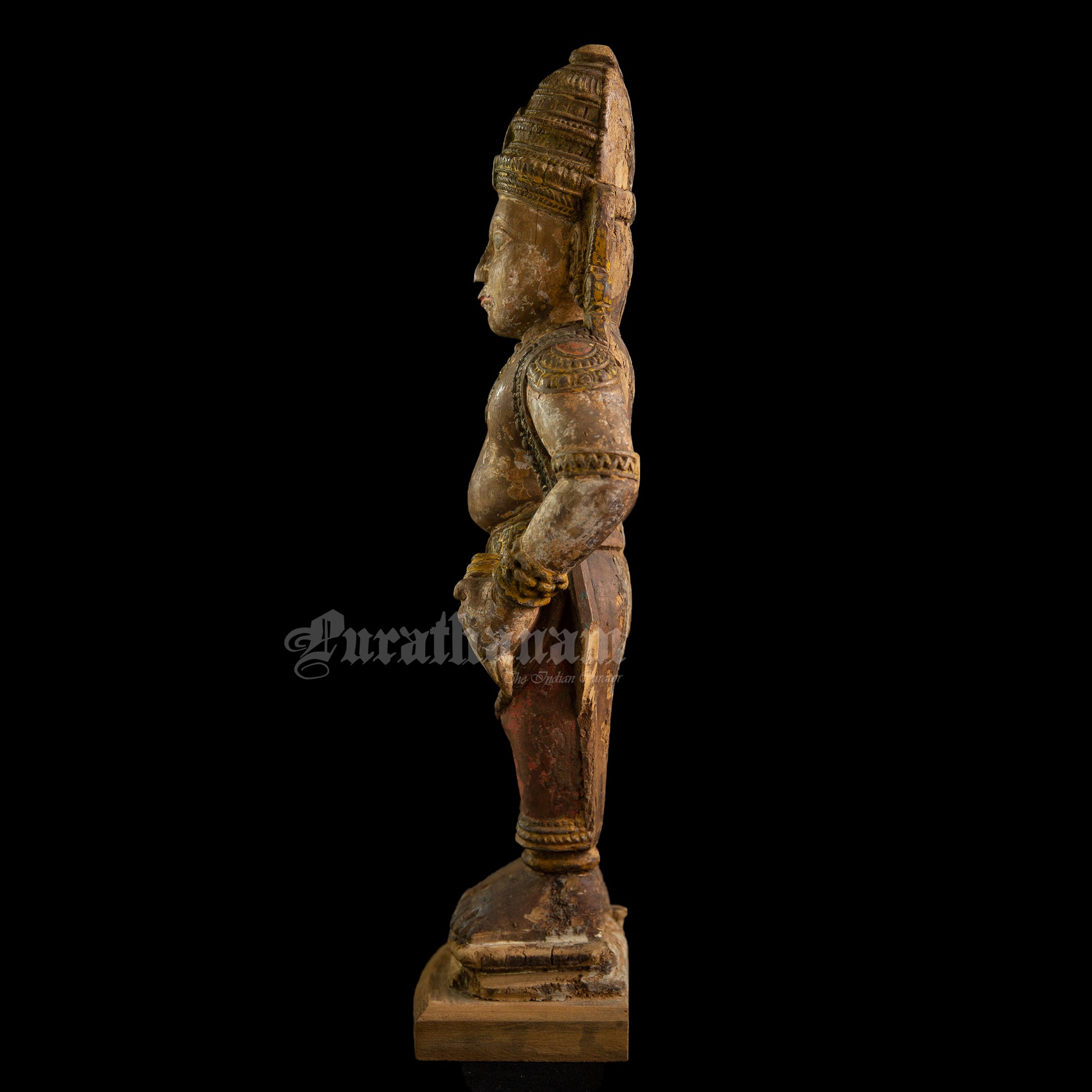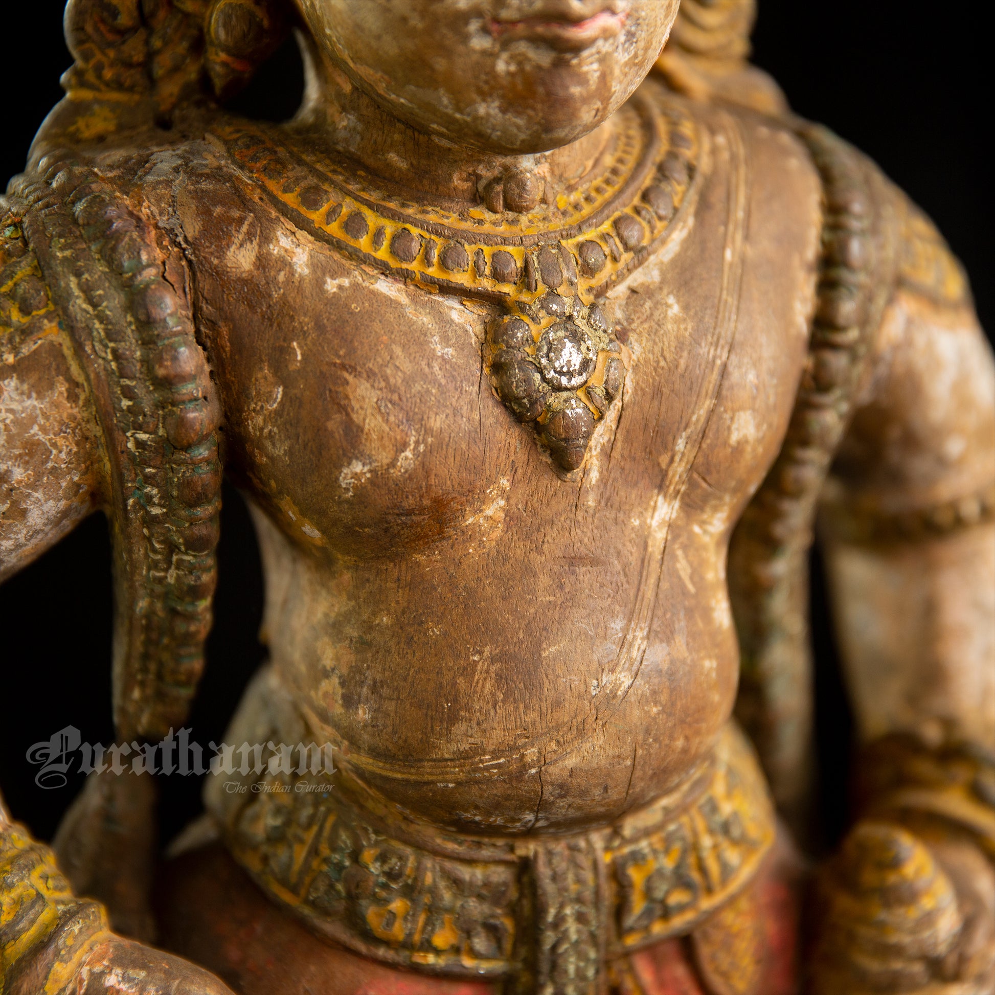 Here is a beautiful hand carved wooden sculpture of Vittal which is more than a century old. The colors the artist has used on the sculpture is so subtle and the aging just adds to the character of Vittal wooden sculpture.