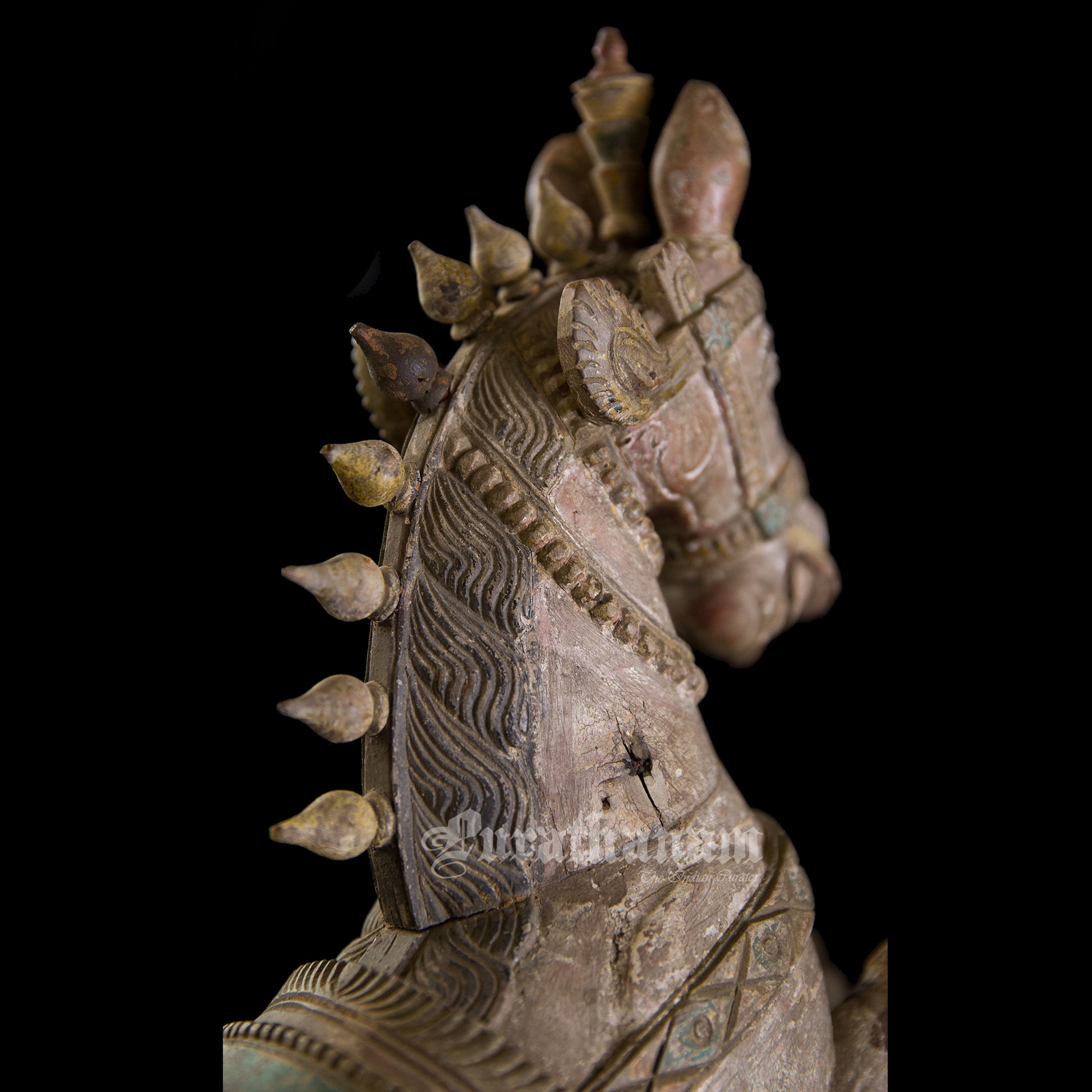 The village temples of Ayyanar are usually flanked by gigantic and colorful statues of Ayyanaar and his companions riding horses or elephants. This particular Ayyanaar Horse is made up of Teak wood. And it’s a beautiful piece of art!!