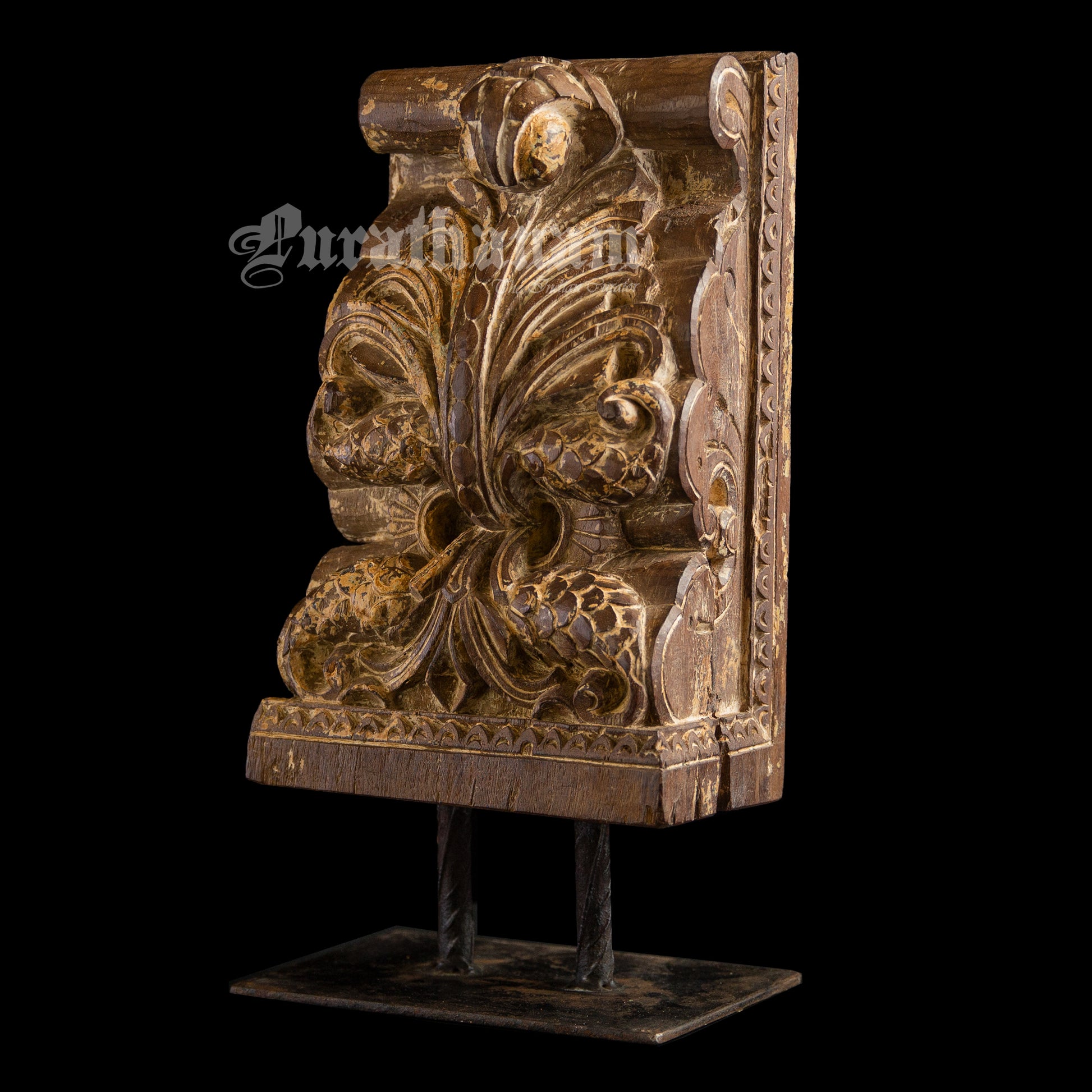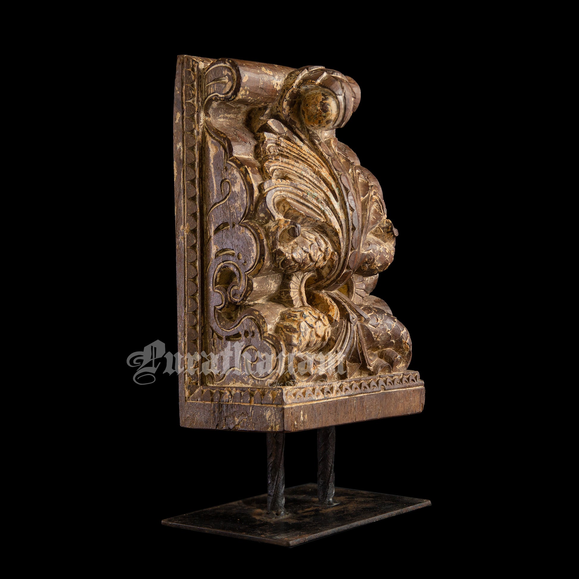 Presented here is an antique architectural wooden bracket made of wood. Indian wall brackets, also known as "brackets" or "corbels" have a rich history that spans many centuries.
