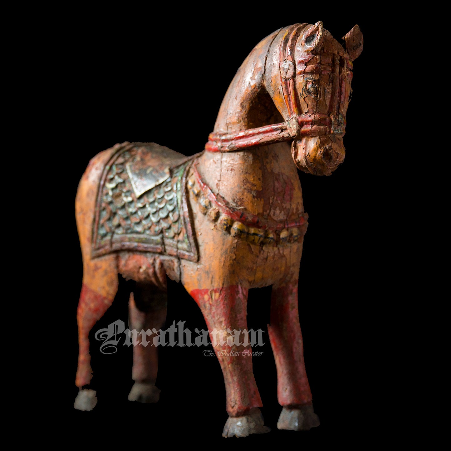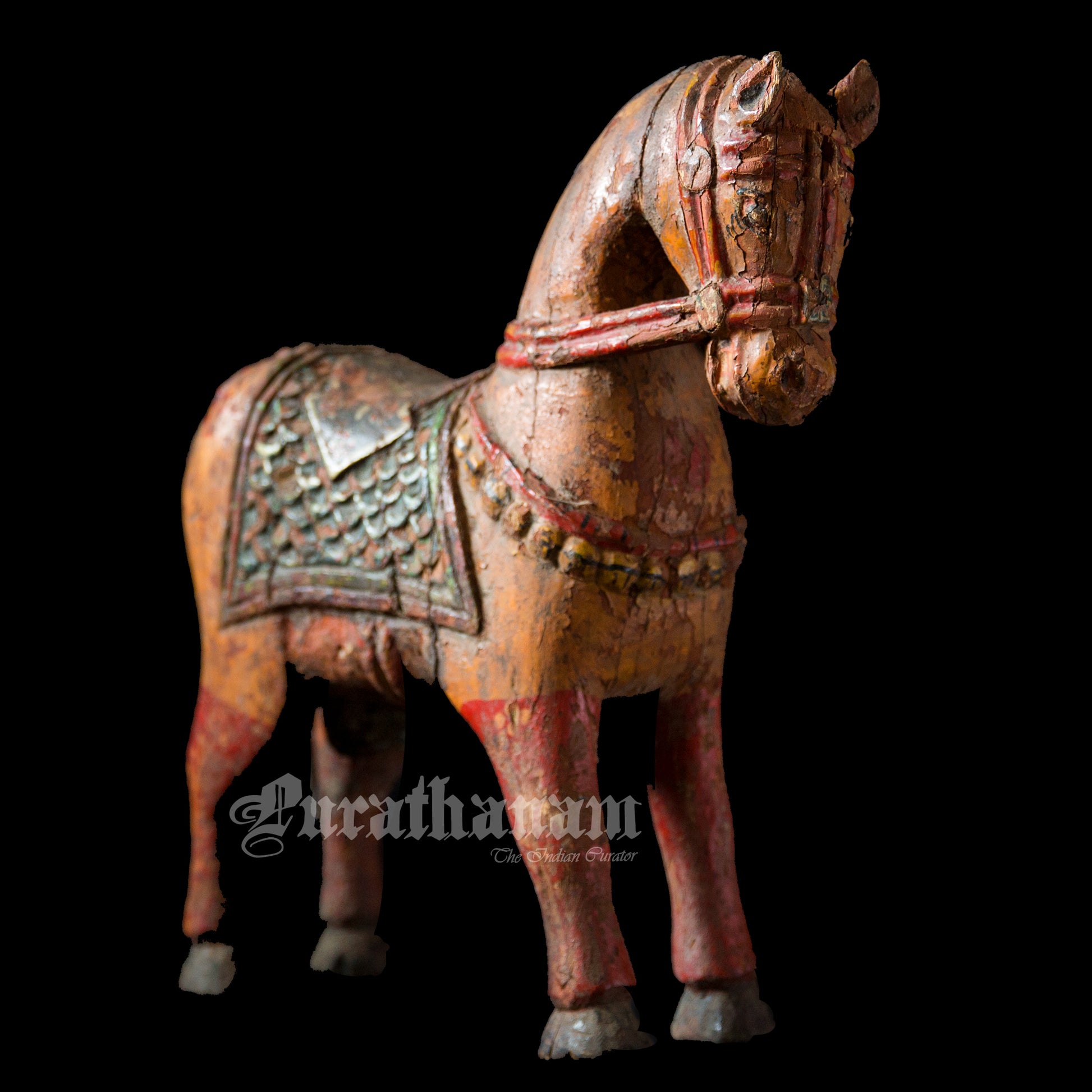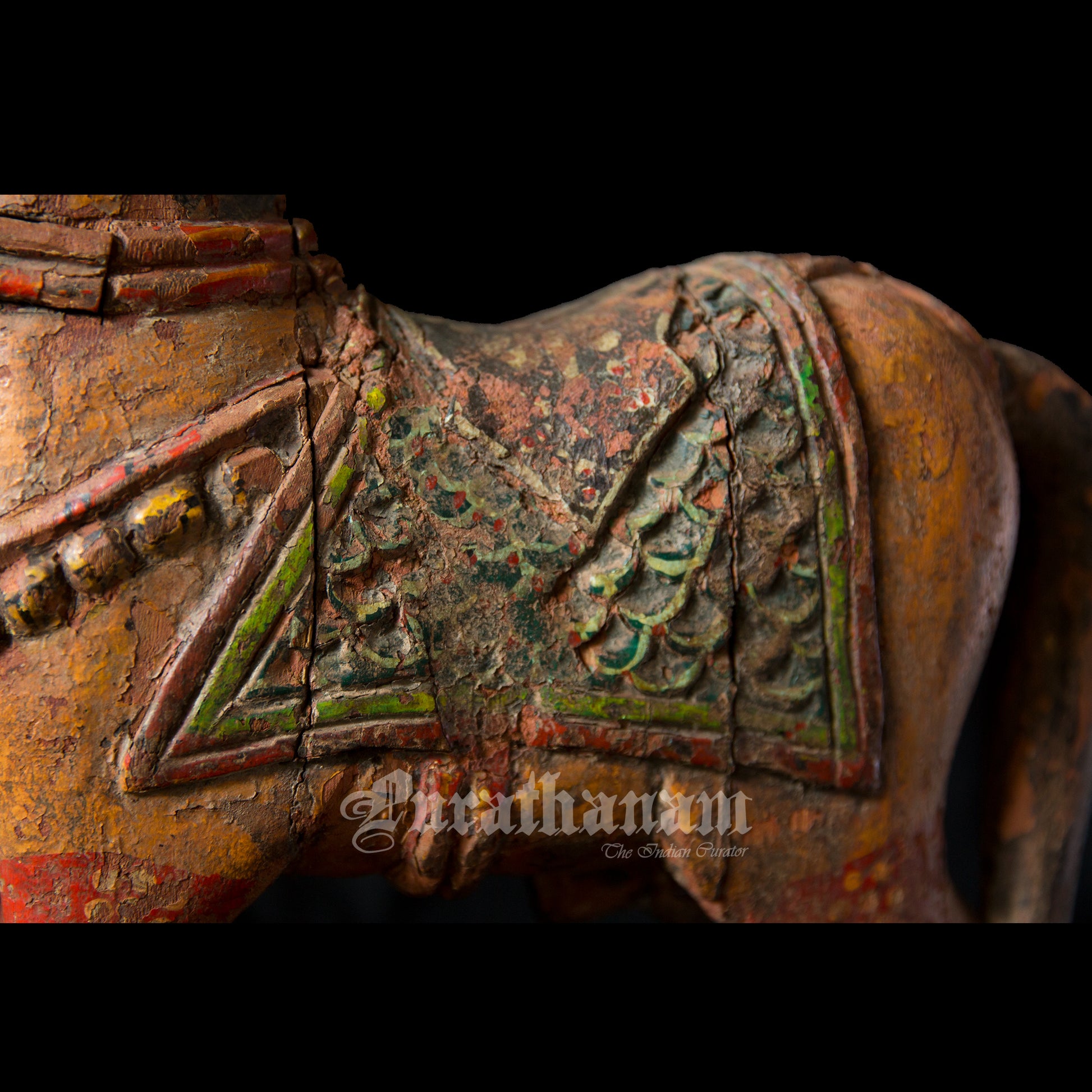 Vintage Wood Polychrome horse from Gujarat!! The look of it is so majestic and very ethnic. The rustic finish adds to the character of this vintage piece.