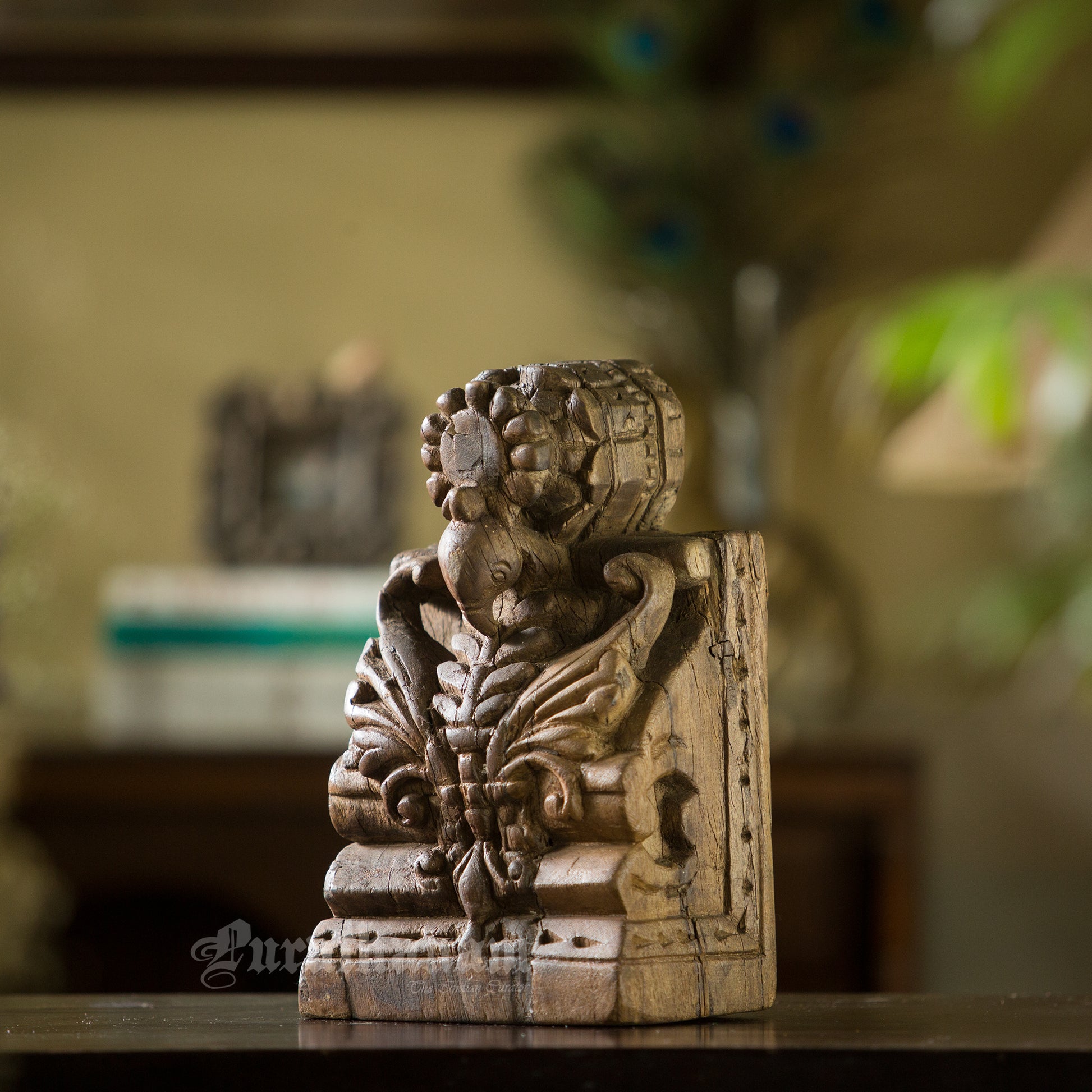 Here is a Corbel (wall bracket) from Gujarat, made of Teak wood. Once part of wooden ceiling has been converted to a decorative wall bracket.