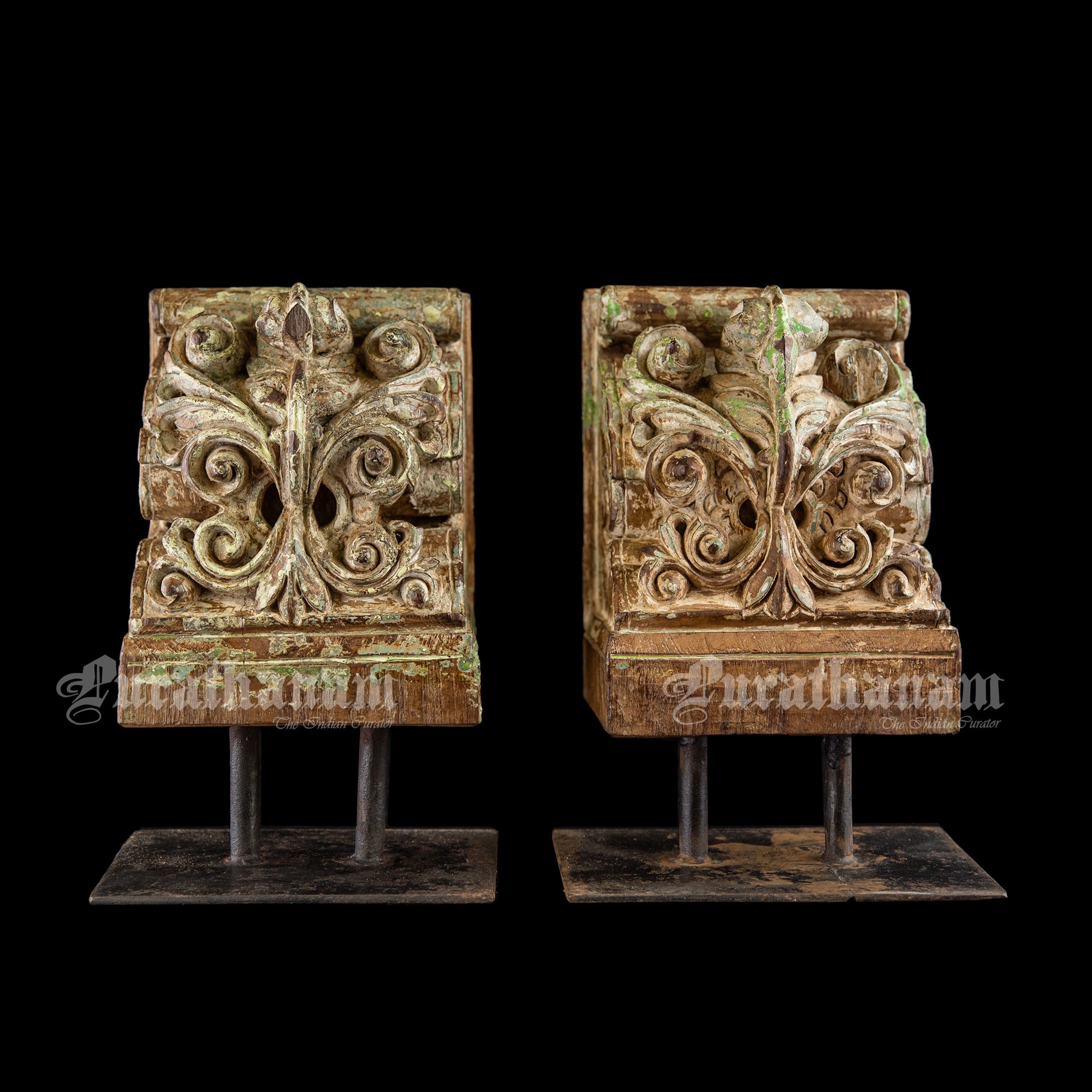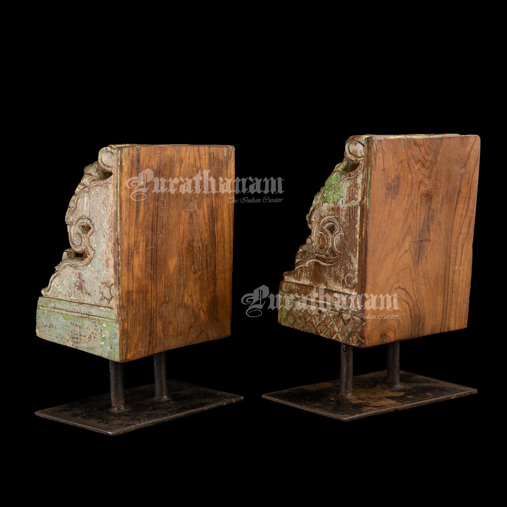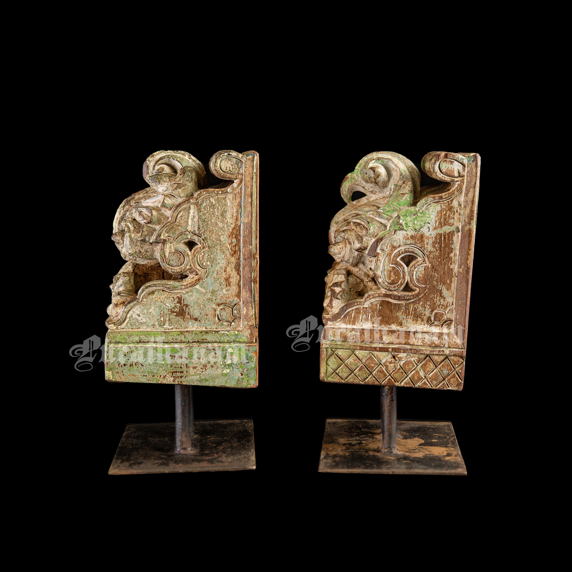 Presented here are antique architectural wooden brackets made of wood from Gujarat. Indian wall brackets, also known as "brackets" or "corbels" have a rich history that spans many centuries.