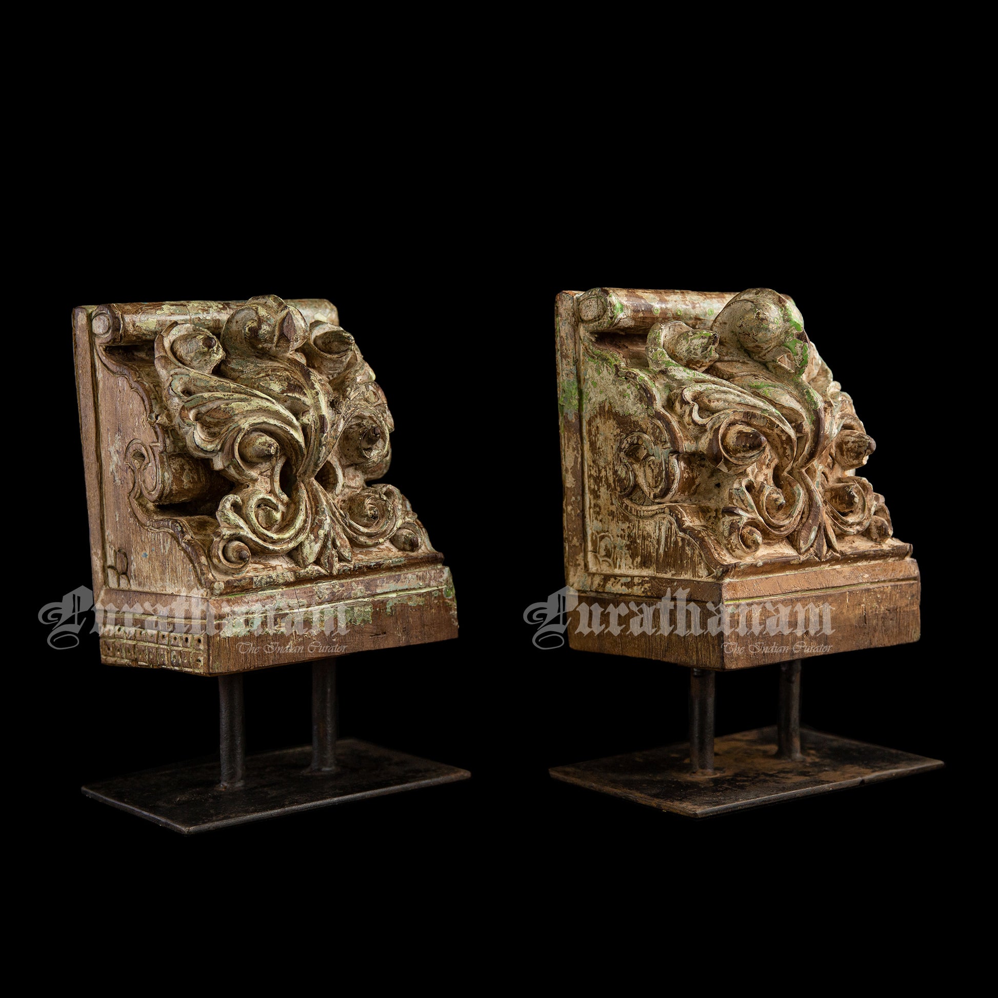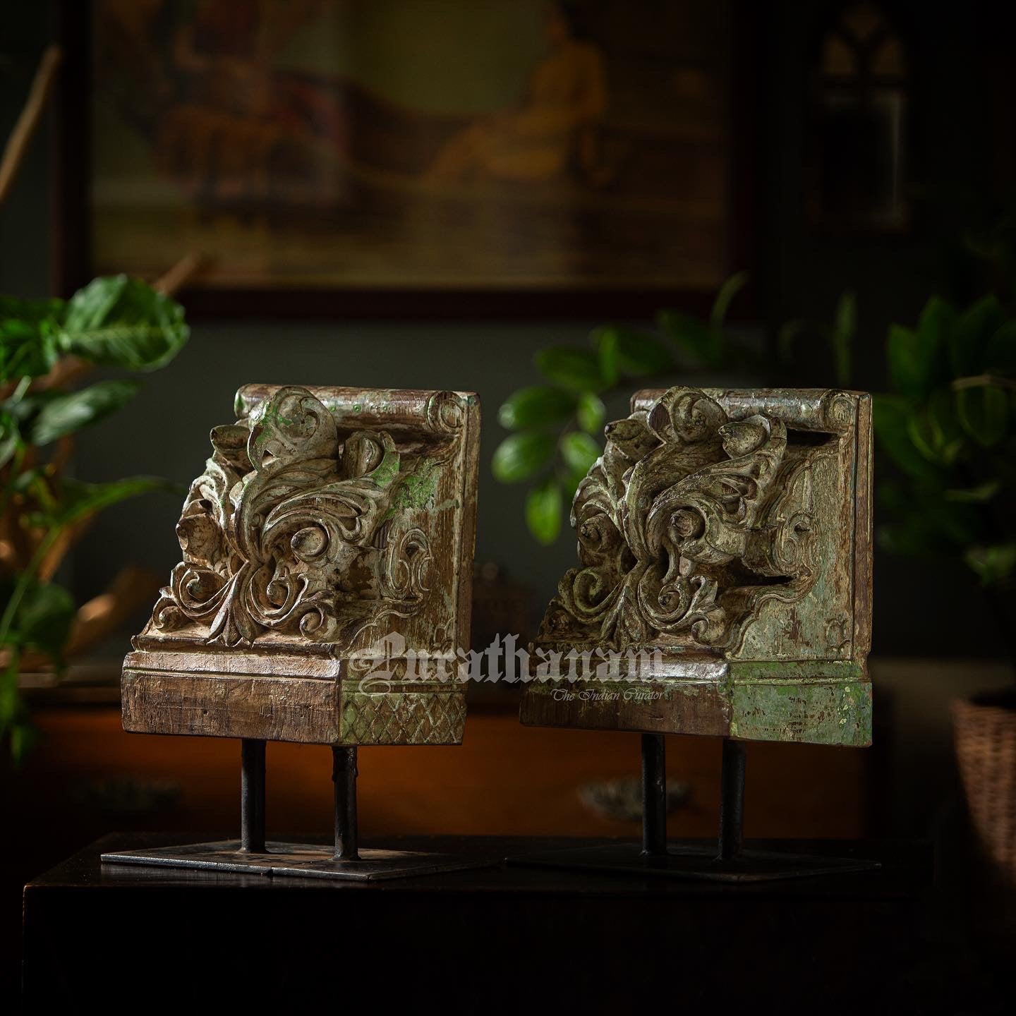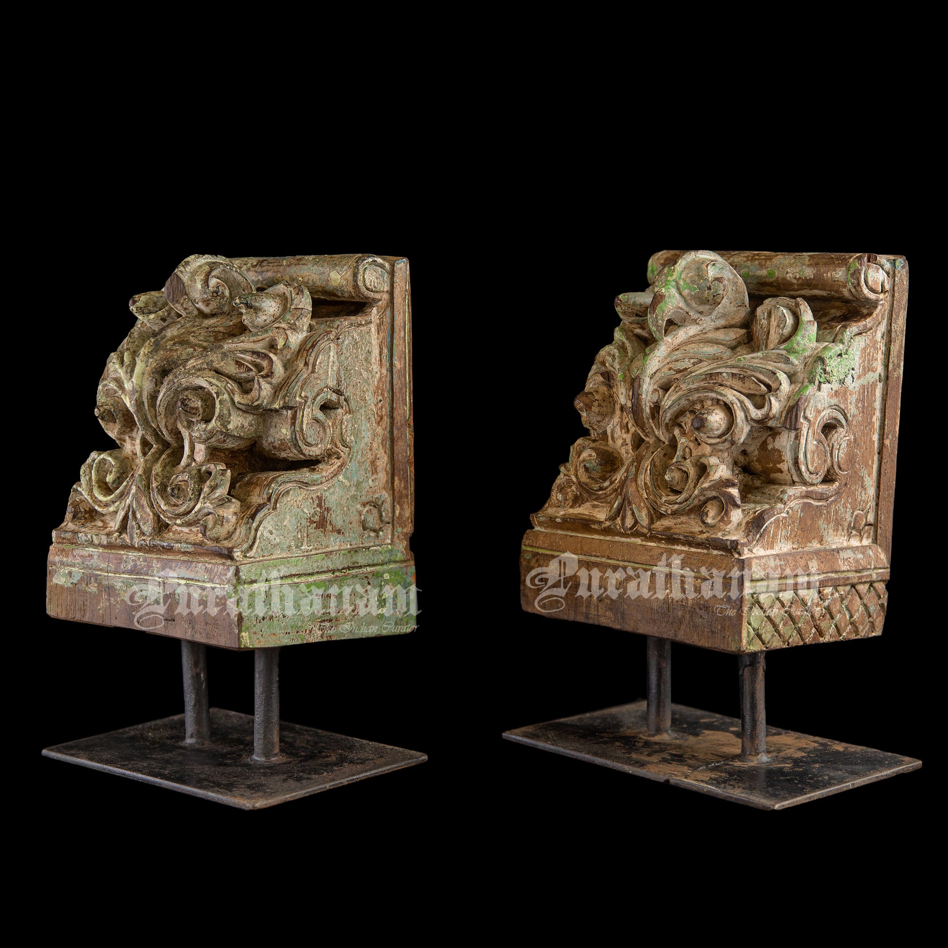 Presented here are antique architectural wooden brackets made of wood from Gujarat. Indian wall brackets, also known as "brackets" or "corbels" have a rich history that spans many centuries.